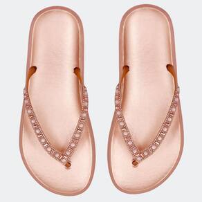 A união entre conforto e praticidade: chinelo! Solado flatform, palmilhas mais largas que garantem muito conforto! O chinelo é produzida no tom champagne, possui bico redondo, tiras finas trabalhadas com cristais em todo cabedal e palmilha anatômica, trazendo ainda mais conforto e praticidade para o seu dia a dia.