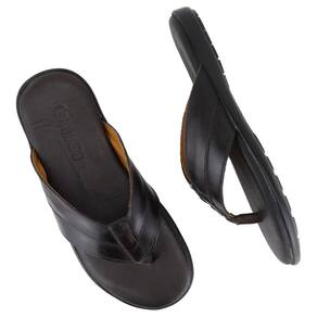 Chinelo de Dedo Couro Masculino Confortável Resistente - 39 - Marrom Chocolate