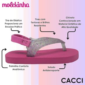Produzido com materiais de alta durabilidade, este modelo foi pensado para resistir à rotina agitada das crianças, mantendo seu visual bonito por muito mais tempo. As tiras possuem textura diferenciada com acabamento em brilho, criando um efeito visual encantador e divertido, sem deixar de lado a resistência. Com esse chinelo, conforto e estilo caminham juntos em todas as fases da infância.