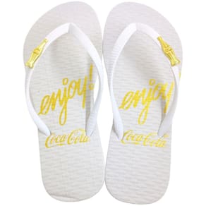 A Coca-Cola é uma empresa mundialmente conhecida e que tem se expandido para o segmento de calçados. Com uma linha diferenciada de tênis, abotinados, sandálias e agora chinelos, que, ajudam a espalhar toda a vibração e otimismo da Coca-Cola através de produtos de qualidade e muito estilo para quem os veste. Este modelo é confeccionado em borracha por completo. Suas tiras são finas e contam com uma aplicação metálica com o formato de uma garrafa de Coca-Cola. O mesmo conta com palmilha reta (modelo tradicional) para encaixe dos pés com a junção de conforto e fácil higienização, além de conter relevos pelo solado do produto com o formato da garrafinha mais amada do Brasil. Solado em borracha antiderrapante.