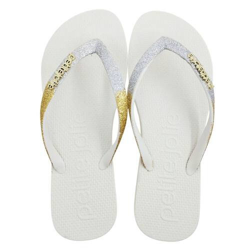 Chinelo de Dedo Feminino Casual Dia a Dia Praia Passeio com Glitter J-Lastic Petite Jolie Pj7298 - 33-34 - Branco