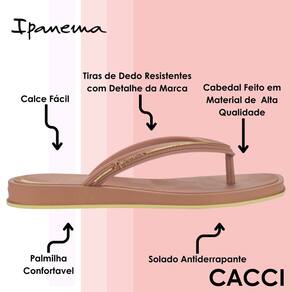 Sua palmilha confortável garante bem-estar durante todo o uso, proporcionando uma sensação leve e agradável a cada passo. O solado antiderrapante oferece firmeza e estabilidade em diferentes superfícies, trazendo mais segurança ao caminhar. O calce fácil é outro ponto de destaque, permitindo praticidade para a rotina corrida sem perder a elegância. As tiras de dedo resistentes foram desenvolvidas com cuidado especial, trazendo acabamento em detalhe metalizado que valoriza ainda mais o visual.