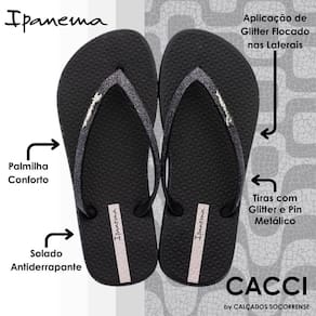 A Ipanema caiu no brilho! Tendência forte dessa temporada, o acabamento brilhoso ganha destaque na Sandália de Dedo Ipanema Maxi Glow trazendo em suas tiras e laterais aplicação de glitter flocado. O pin metálico é aquele toque final de ainda mais glamour!