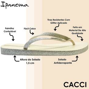 A Ipanema caiu no brilho! Tendência forte dessa temporada, o acabamento brilhoso ganha destaque na Sandália de Dedo Ipanema Maxi Glow trazendo em suas tiras e laterais aplicação de glitter flocado. O pin metálico é aquele toque final de ainda mais glamour!