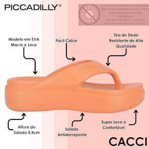 O Chinelo Feminino Piccadilly é sinônimo de conforto, leveza e praticidade. Desenvolvido para proporcionar uma sensação suave ao caminhar, ele é ideal para quem busca um calçado versátil e agradável para o dia a dia. Seu design moderno une o visual casual com o bem-estar que só um modelo leve e anatômico pode oferecer, tornando-se perfeito para momentos de lazer, descanso ou para compor produções descontraídas com muito estilo.