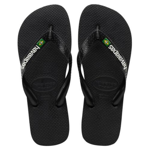 Os Chinelo de Dedo Havaianas Clássico Brasil Logo feitos de solas de borracha flexíveis, resistentes e macias, apresenta cores vivas com um logotipo de baixo relevo destacado e bandeira do Brasil nas tiras