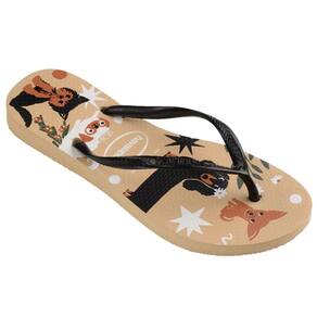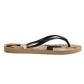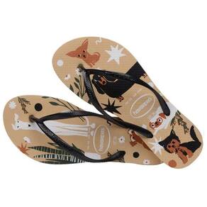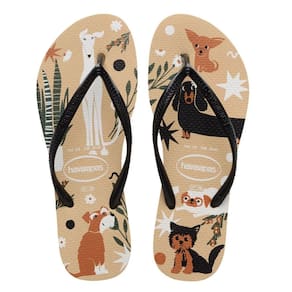 Os Chinelo de Dedo Havaianas Feminino Slim Pets feitos de solas de borracha flexíveis, resistentes e macias, apresenta cores vivas com um logotipo de baixo relevo destacado e bandeira do Brasil nas tiras.