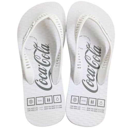 A Coca-Cola é uma empresa mundialmente conhecida e que tem se expandido para o segmento de calçados. Com uma linha diferenciada de tênis, abotinados, sandálias e agora chinelos, que, ajudam a espalhar toda a vibração e otimismo da Coca-Cola através de produtos de qualidade e muito estilo para quem os veste. Este modelo é confeccionado em borracha por completo. Suas tiras são grossas e contam com uma aplicação com o logo da Cola Cola além de detalhes vazados por toda a tira. O mesmo conta com palmilha reta (modelo tradicional) para encaixe dos pés com a junção de conforto e fácil higienização, além de conter relevos pelo solado do produto com o formato da garrafinha mais amada do Brasil. Solado em borracha antiderrapante.