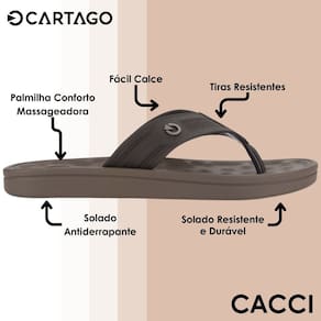 Mais um clássico que chegou para durar! Cartago Alabama, um modelo que exala versatilidade, com palmilha massageadora e um design para dar mais conforto ao caminhar. Um produto com novas cores mas com texturas, relevos e estilo trazendo leveza e anatomia para o peito do pé.