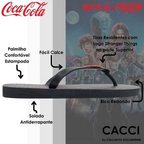 Chinelo de Dedo Netflix x Stranger Things Abertura Coca Cola - Preto - 37