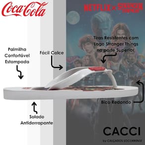 Seja para relaxar em casa, assistir sua série favorita ou curtir um passeio descontraído, o Chinelo Netflix x Stranger Things Coca-Cola é a combinação perfeita de conforto, estilo e cultura pop.