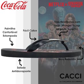 Seja para relaxar em casa, assistir sua série favorita ou curtir um passeio descontraído, o Chinelo Netflix x Stranger Things Coca-Cola é a combinação perfeita de conforto, estilo e cultura pop.