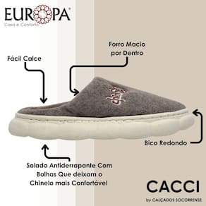 Produzido com materiais de ótima qualidade, garantido assim uma ótima durabilidade ao produto e conforto para seus pés. Sola de Borracha de altíssima durabilidade, solado impermeável. O chinelo de quarto Europa é a junção de conforto e praticidade que falta em seu dia a dia. Você vai achar que está pisando nas nuvens! Alivie o tensão da rotina e acorde disposto no dia seguinte.