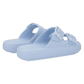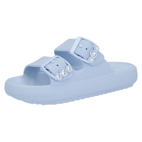 Tiras ajustáveis com pedrarias brilhantes: Um toque de glamour que valoriza o design e permite um ajuste perfeito aos seus pés.