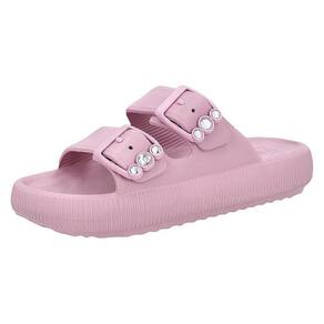 Tiras ajustáveis com pedrarias brilhantes: Um toque de glamour que valoriza o design e permite um ajuste perfeito aos seus pés.