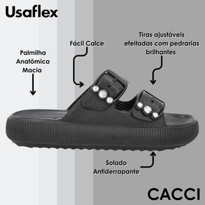 Chinelo Feminino Birk Conforto Brilhante Ajustável Usaflex - Preto - 38