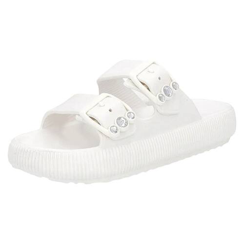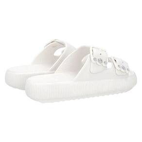 Tiras ajustáveis com pedrarias brilhantes: Um toque de glamour que valoriza o design e permite um ajuste perfeito aos seus pés.