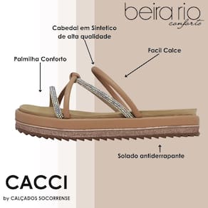O Chinelo Beira Rio 8354.1441 é confeccionado com materiais de alta qualidade, assegurando durabilidade e resistência. As tiras superiores são desenhadas para proporcionar ajuste seguro, ao mesmo tempo em que conferem um toque estiloso ao calçado.