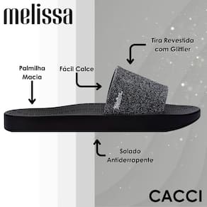 O Chinelo Slide Melissa Sun Sunset Ii é a escolha perfeita para quem ama praticidade e charme. este modelo traz uma tira larga Com glitter que adiciona um toque divertido e cheio de personalidade ao visual.