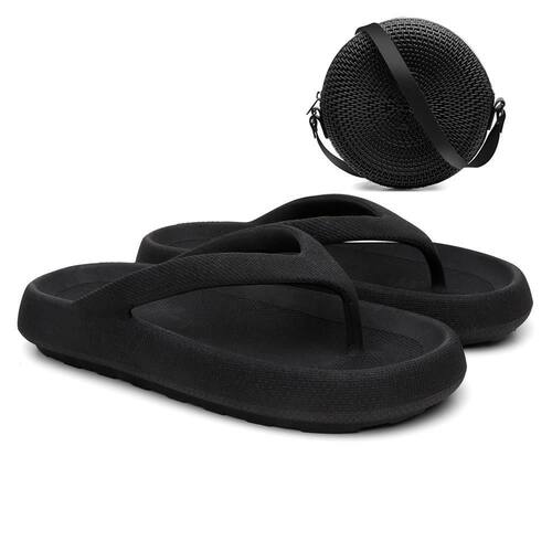 Chinelo Feminino de Dedo Casual + Bolsa Quebek Tiracolo Kit - 34-35 - Preto