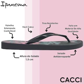 O chinelo Ipanema é a escolha perfeita para quem valoriza conforto, praticidade e um toque de estilo em todos os momentos do dia. Desenvolvido com material de alta qualidade, ele oferece excelente resistência e durabilidade, sendo ideal para acompanhar o ritmo intenso das rotinas modernas. As tiras resistentes se ajustam perfeitamente aos pés, proporcionando firmeza ao caminhar, enquanto o calce fácil garante agilidade na hora de vestir, ideal para crianças, adolescentes ou adultos que buscam praticidade sem abrir mão do visual. A palmilha estampada traz um charme extra, com desenhos modernos e tropicais que fazem toda a diferença no look, além de ser macia e extremamente confortável, abraçando os pés com suavidade a cada passo. Com solado de 1,5 cm de altura, esse modelo proporciona estabilidade e leve elevação, enquanto a base antiderrapante oferece segurança em diferentes tipos de solo, evitando escorregões. É a pedida ideal para dias quentes, momentos de lazer, passeios ao ar livre ou até mesmo para ficar em casa com muito estilo e liberdade. Versátil, bonito e funcional, esse chinelo traduz o espírito da marca Ipanema: descomplicado, alegre e feito para quem vive intensamente cada instante.