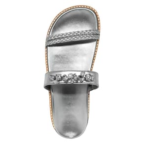Visual moderno e todo o conforto da palmilha anatômica e salto flatform. Seu design distinto combina harmoniosamente com as pedras delicadamente incorporadas, criando um visual único que chama a atenção.