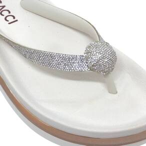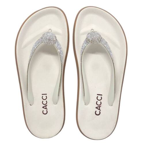 Chinelo Feminino Flat Moderno Conforto Tira Strass Cacci - Branco - 38