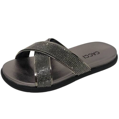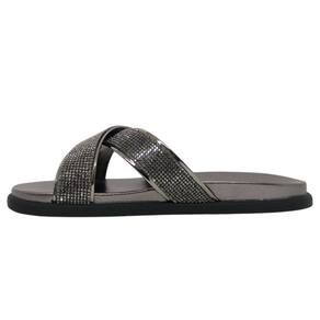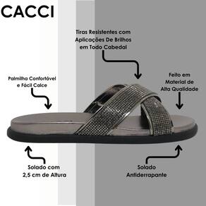 Chinelo Feminino Flat Tira Strass Conforto Rasteira Cacci - Prata - 36