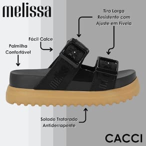 Com o Chinelo Flat Melissa, estilo e conforto se encontram em um design apaixonante! Este modelo traz tiras largas que envolvem o pé com conforto, proporcionando um visual moderno e cheio de personalidade, além de um calce fácil que proporciona ainda mais praticidade para o dia a dia. Feito com o tradicional material Melflex, característico da Melissa, oferece maciez e um toque único, além de um leve aroma adocicado que é pura nostalgia. O solado acústico garante segurança para uso em qualquer lugar, seja em casa ou em passeios casuais. Complemente seu look com o toque descontraído e fashion da Melissa, perfeito para quem ama estilo sem abrir mão do conforto!