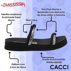 Chinelo Feminino Flatform Conforto Strass Papete Mississipi - 34 - Preto