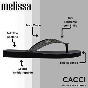 Apresentando o Chinelo Feminino Glitter Melissa Sun Long Beach II 35781: a personificação do glamour casual que ilumina cada passo com um toque de brilho e estilo. Criado pela renomada marca Melissa, este chinelo é mais do que apenas um calçado; é uma expressão de moda que eleva instantaneamente qualquer look.