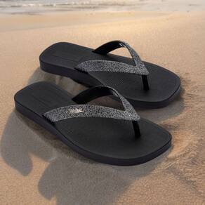 O design inovador do Sun Long Beach II une o conforto descontraído de um chinelo com a sofisticação do glitter, transformando cada passo em um desfile de moda pessoal. O brilho sutil adiciona um toque de elegância, tornando este chinelo perfeito tanto para ocasiões casuais quanto para eventos descontraídos.