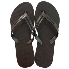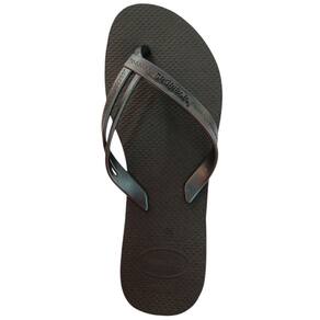 A Havaianas Elegance é simples e luxuosa ao mesmo tempo: os chinelos têm todo o conforto Havaianas que você já conhece e tiras lisas metalizadas com um filete vazado em um dos lados. Disponível numa cartela de cores sofisticada.