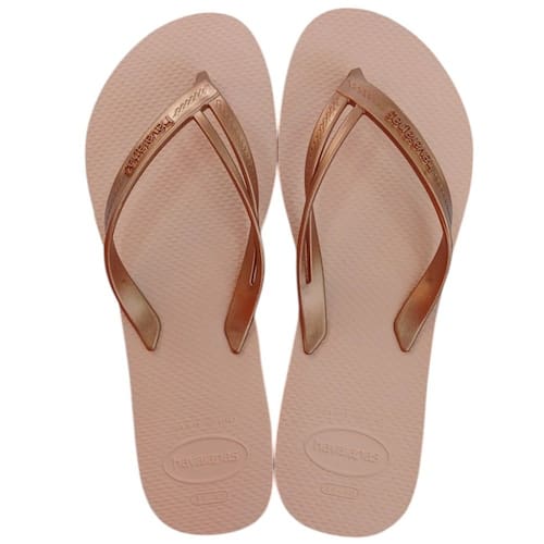 A Havaianas Elegance é simples e luxuosa ao mesmo tempo: os chinelos têm todo o conforto Havaianas que você já conhece e tiras lisas metalizadas com um filete vazado em um dos lados. Disponível numa cartela de cores sofisticada.