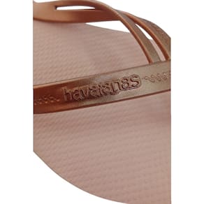 A Havaianas Elegance é simples e luxuosa ao mesmo tempo: os chinelos têm todo o conforto Havaianas que você já conhece e tiras lisas metalizadas com um filete vazado em um dos lados. Disponível numa cartela de cores sofisticada.