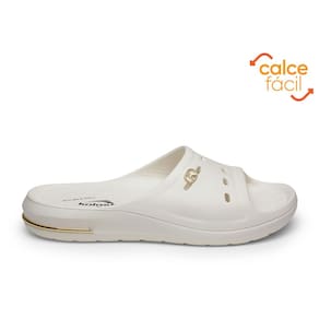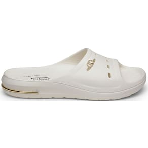O chinelo feminimo calce fácil é fechado na parte superior, com três aberturas horizontais para ventilação e um pequeno emblema metálico circular com o logotipo da marca. A palmilha em EVA é anatômica e confortável, com uma sola de 3 cm, que conta com uma linha prateada decorativa na parte traseira do produto!