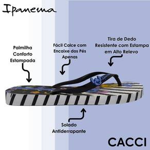 A Ipanema Disney Joy, em traduções lúdicas e delicadas, destaca os personagens no meio da palmilha rodeando-os por ícones reconhecidos, como laços e corações. Ainda conta com grafia continua na lateral da sola, além da tira translúcida com aplique em alto-relevo do personagem complementa o chinelo.