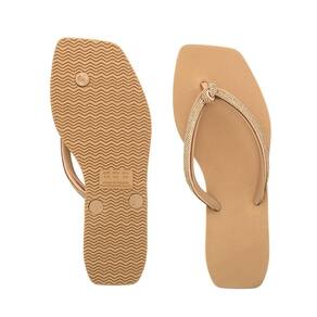 Chinelo Feminino Moderno Confortável Detalhe em Brilho - 36 - Bege