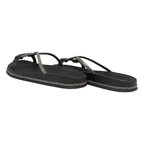 Tiras Elegantes com Detalhes Brilhantes: As tiras macias e resistentes, enlaçadas com aplicação de strass e pedrarias, garantem um toque de glamour único.