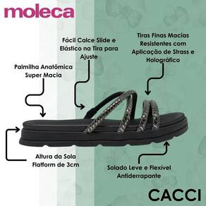 O Chinelo Feminino Slide Papete Brilho da Moleca traz sofisticação e praticidade para compor seus looks com muito charme.