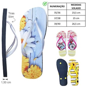 Linda, diferenciada e moderna, ideal para uso e perfeita para presentear. Tiras Slim combinando com a estampa do chinelo.
