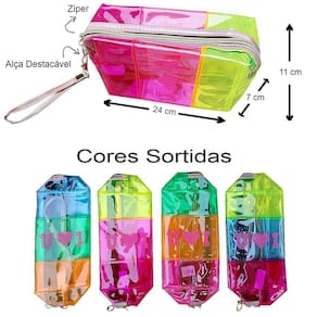 O kit acompanha também 1 linda e colorida Necessaire. Moderna e com as cores do verão, possui alça destacável ela é perfeita para levar na praia, piscina ou mesmo para acomodar suas maquiagens e pincéis preferidos. Fácil de limpar, fechamento a zíper. Possui 3 cores diferentes tornando-a mais bonita. Devido ao alto giro do produto não é possível a escolha das cores, enviaremos aleatoriamente conforme disponibilidade de estoque.