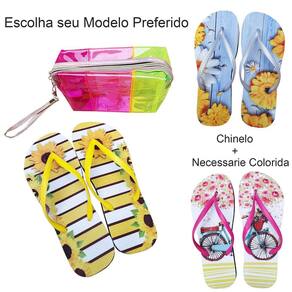 Contém: 1 Chinelo na Estampa e Numeração Selecionada + 1 Necessaire Colorida.
