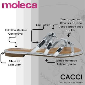 A sandália Moleca é a opção ideal para quem busca conforto e praticidade no dia a dia. Elaborada em material sintético de alta qualidade, este modelo rasteiro oferece leveza e durabilidade. Seu design é moderno e versátil, perfeito para complementar looks casuais e descontraídos. Com palmilha macia e solado antiderrapante, garante um caminhar confortável e seguro. Uma escolha perfeita para os dias quentes, trazendo estilo sem abrir mão do bem-estar!