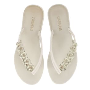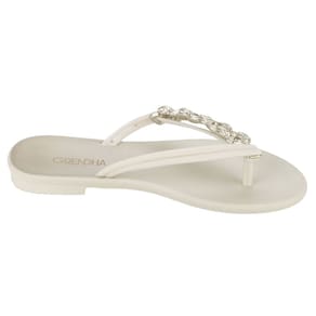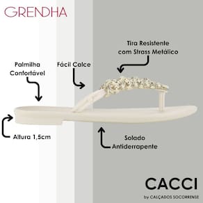 A nova rasteira da Grendha é elegante e muito charmosa. Este modelo é confeccionado em material emborrachado de alta qualidade e garante conforto e praticidade para seu dia a dia. O protagonismo do produto é o seu cabedal que possui o trançado tubular de strass que vem despontando no mercado dos calçados e em acessórios como bolsas, dando um charme a mais para o calçado. Envolvendo as tiras externas, ele entrega valor através do visual metálico. Somado a isso, a palmilha e o solado são flexíveis, emborrachados e antiderrapantes, garantindo segurança e estabilidade ao caminhar.