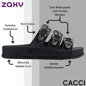 A Zaxy Western se destaca com seu estilo único por suas lindas tiras com detalhes incríveis! Western é a tendência do momento. Essa nova versão da Partner é atualizada com três tiras e ainda mais destaque com aviamentos metálicos. Seu solado flatform traz mais sustentabilidade e muito conforto para suas passadas, leve com você a peça coringa do seu guarda-roupas, combine looks inesquecíveis e vá com ela para todos os lugares! Feita de material de alta qualidade,e com palmilha super macia, seu solado é antiderrapante que faz com que você caminhe com mais confiança! Garanta já a sua!