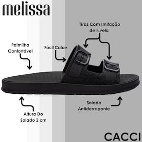 Fabricado com Melflex, o Melissa Sun Cruise oferece durabilidade e conforto no uso diário. Pesando aproximadamente 630g, é leve e prático para o dia a dia das mulheres. O acabamento fosco garante um toque de sofisticação, enquanto a tendência casual permite que seja utilizado em diversas ocasiões. Com este calçado, você estará sempre pronta para qualquer evento, com grande estilo e conforto.