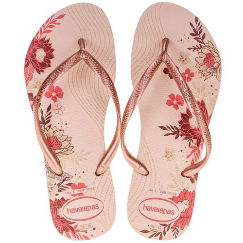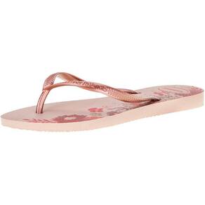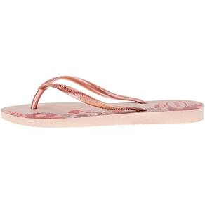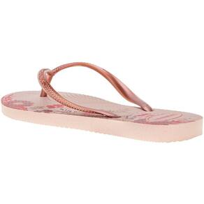 O Chinelo Feminino Slim Organic Havaianas é confeccionado em borracha de alta qualidade com acabamento vulcanizado, tiras metalizadas, palmilha com estampa personalizada e solado antiderrapante.