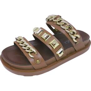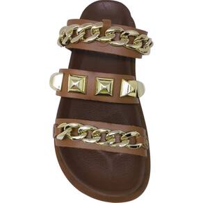 Chinelo Flat Feminina Tratorado Tiras Pedraria Cacci Moderno - Marrom - 38