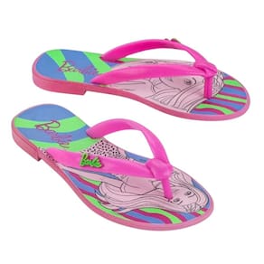 O Chinelo Grendene Barbie Star Infantil Rasteira Rosa Azul é o modelo clássico de flip flop, o chinelo de dedo, com um toque de glamour. Confeccionado em material sintético de alta qualidade e em cores de alto verão para Barbie. A palmilha possui estampa listrada em verde, azul e rosa, além do rosto da Barbie e o logo com seu nome.